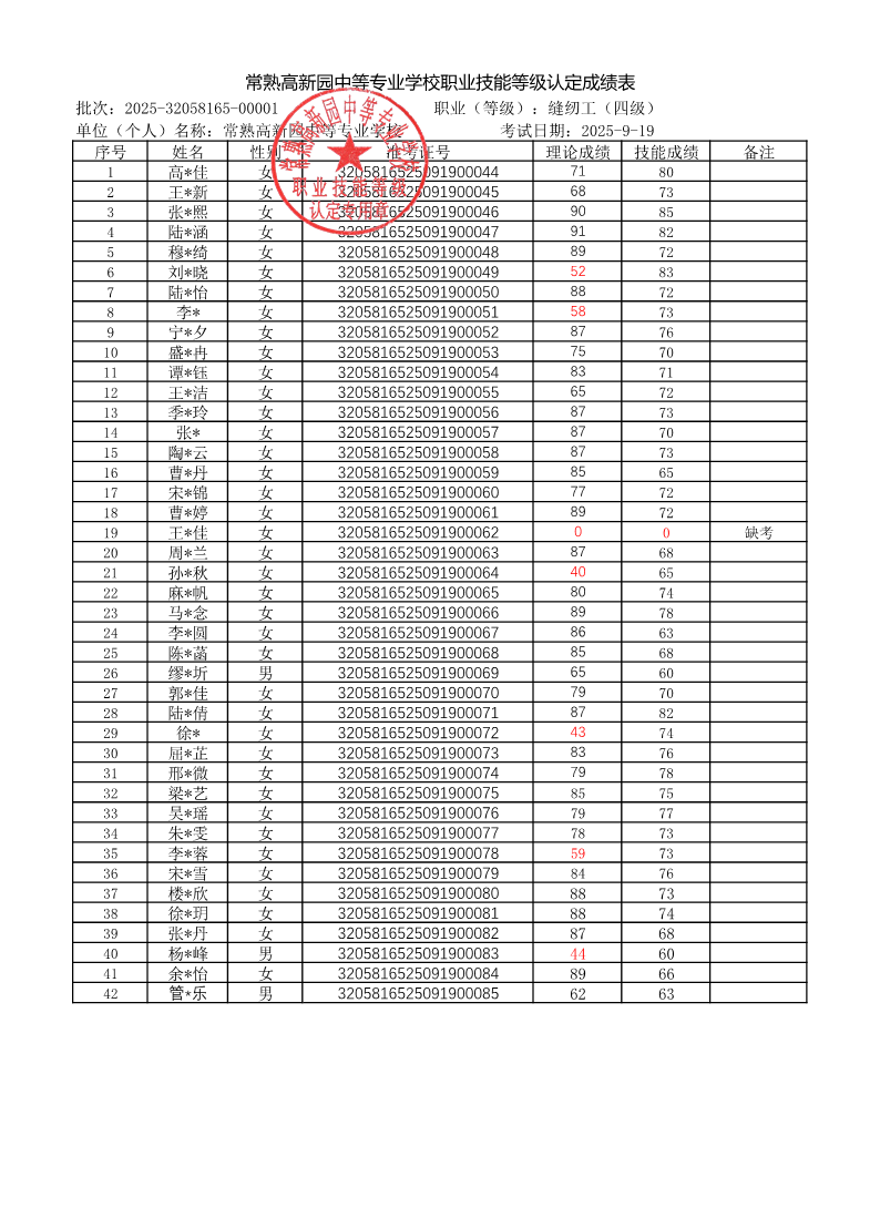 根据职业技能等级认定相关文件要求,经理论、实操考核及成绩审核,2025-32058165-00001、00002批次的职业技能等级认定考试成绩已确定,现将成绩予以公示。